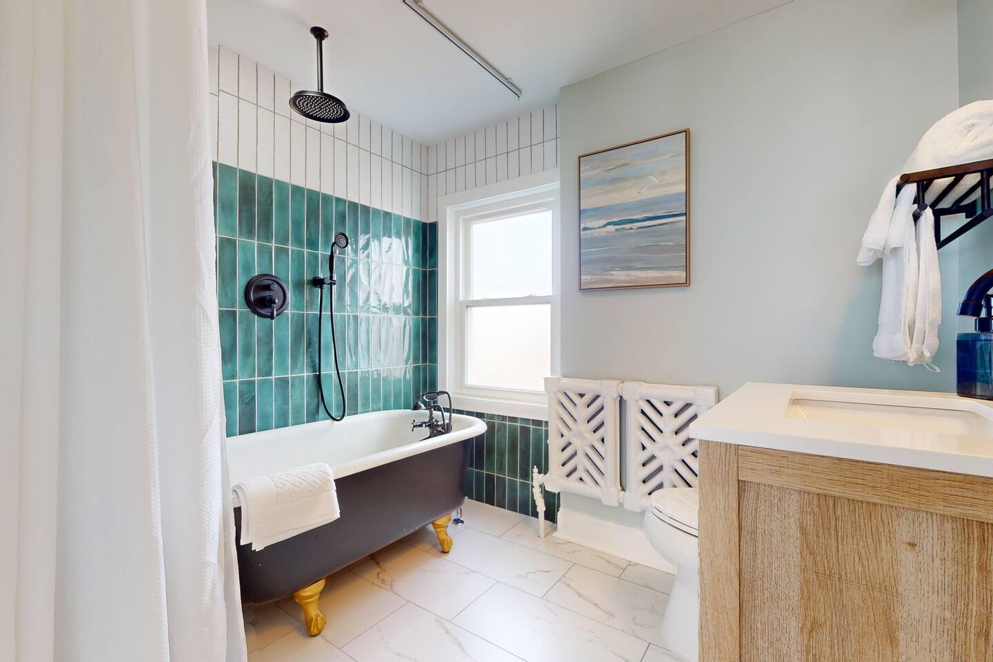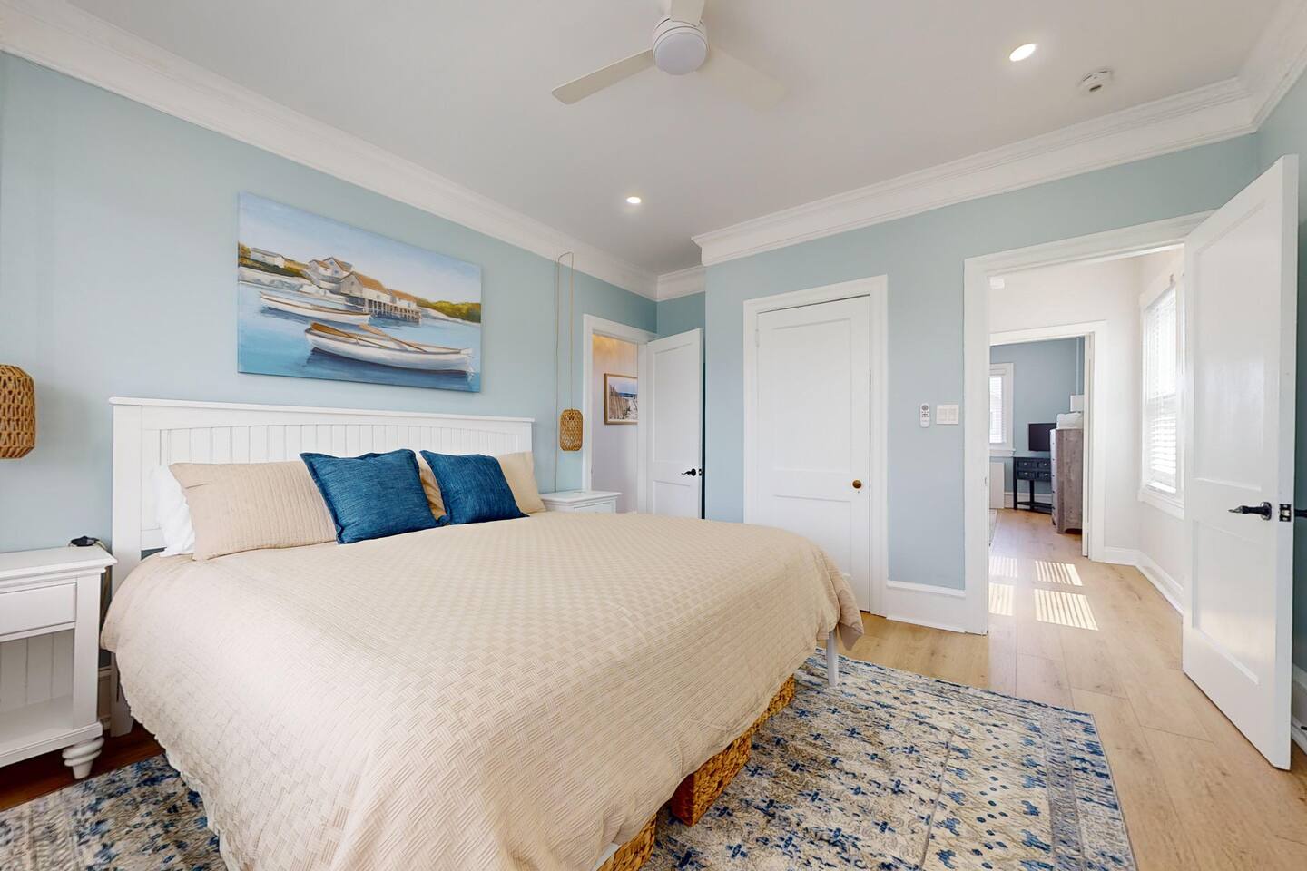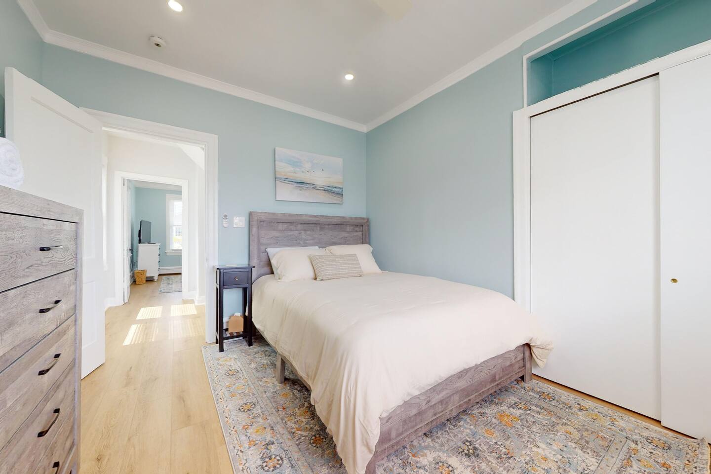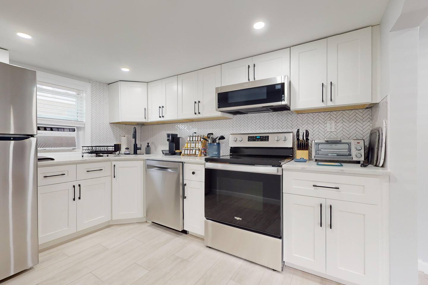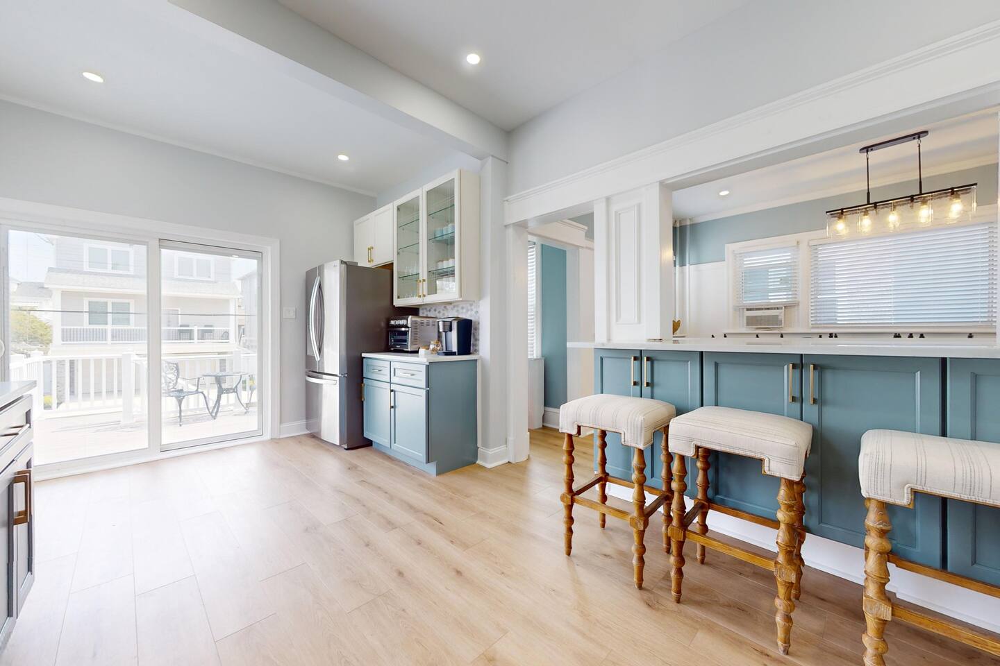 This newly renovated, 7-bedroom, 4-bathroom beach house is the perfect getaway for large families, groups, or friends traveling together. Located just one block from the beach in Ventnor City, this property encompasses two separate units rented as one, offering plenty of space, comfort, and privacy. Inside, comfortable furnishing, large windows that fill the home with natural light, and stylish beachy décor that creates a relaxed, coastal vibe. With 10 comfortable beds, three living spaces (two living rooms and a family room), and two fully stocked and equipped kitchens, this home is designed with your comfort in mind. Whether you’re cooking a big family meal, lounging after a day at the beach, or watching a movie together, there’s room for everyone. The unbeatable location means you’re just steps away from the sandy shores, local restaurants, and a charming theater—all within a block of the house. Perfect for those looking to explore the area, relax by the ocean, or enjoy quality time with loved ones. Your ultimate beach vacation awaits—book today! 🌴🌞