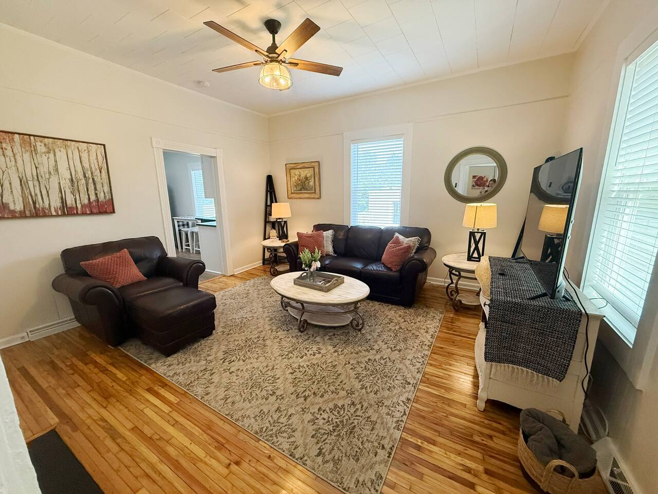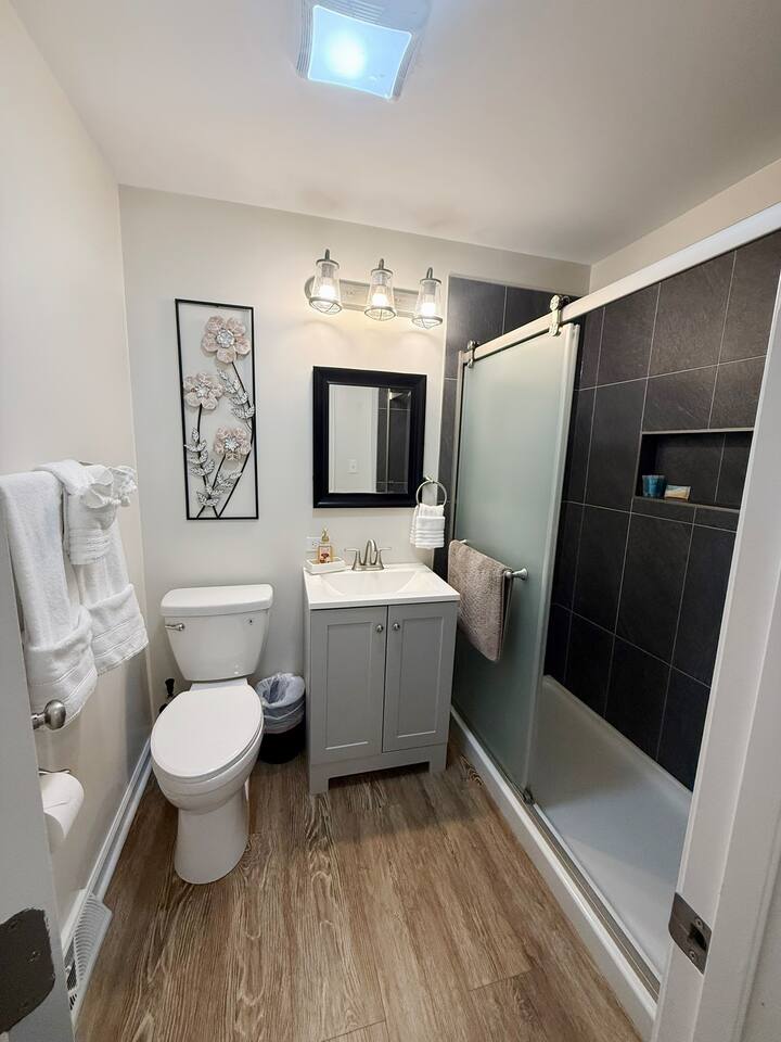 Katie’s home was so cute and tastefully decorated. She had so many nice touches, including cold drinks, snacks, toothbrush and toothpaste in case you forget yours, coffee pods and items to do laundry. We thoroughly enjoyed being there and would definitely stay again! Very convenient to things to do and restaurants as well!