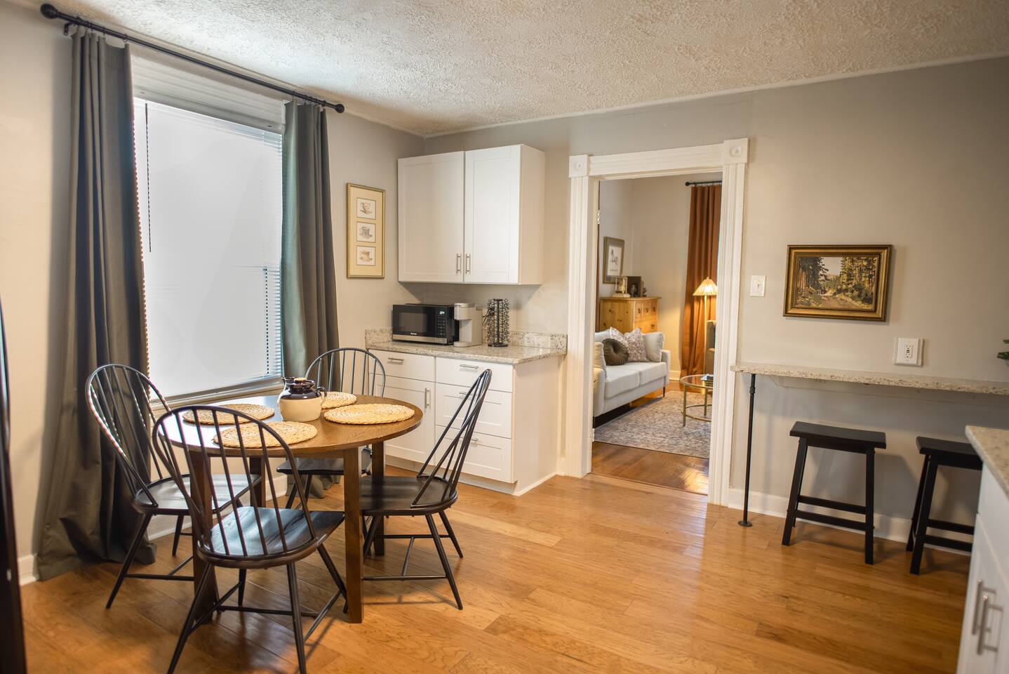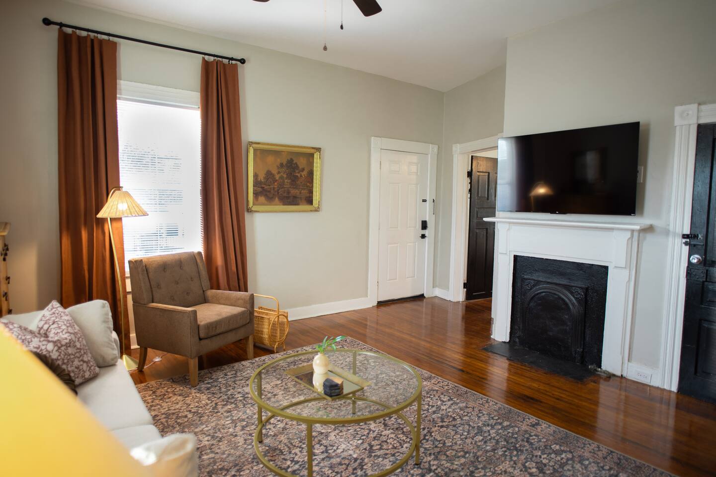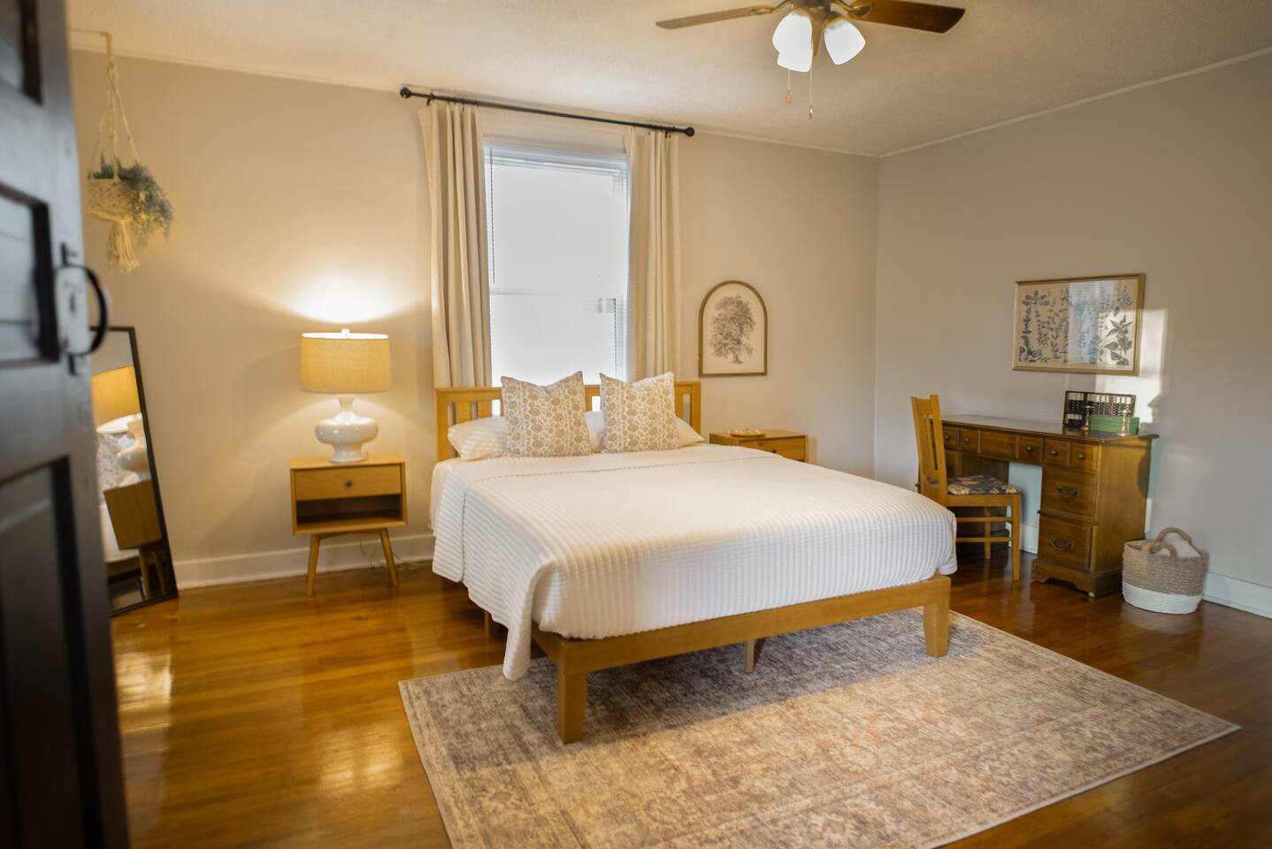 Step into this thoughtfully updated Schoolfield District retreat, where timeless character meets modern comfort. From original hardwood floors and vintage fireplaces to a fresh, functional layout, this space was designed with extended stays and relaxing getaways in mind. Why Guests Love It Here: 🛏 Relax & Recharge: Two private bedrooms, each with a queen bed and its own dedicated workspace — perfect for remote work or a little quiet time ✨ Historic Charm: Preserved (non-working) fireplaces and original wood floors offer cozy, vintage vibes 🍳 Fully Equipped Kitchen: Everything you need to cook at home — stove, fridge, microwave, dishwasher, Keurig, blender, cookware, dishes & more 🌿 Spacious Backyard + Screened Porch: Enjoy morning coffee outside or unwind after a day exploring Danville 💻 Work-Friendly: Two laptop-ready desks and fast Wi-Fi make it easy to stay productive on the road Close to It All – Ideal for Work or Play 🎰 0.9 miles to Caesars Virginia Casino 🏥 2.5 miles to Sovah Health 🎓 1.7 miles to Averett University 🌇 2.5 miles to Downtown Danville (River District) — home to local dining, shops, Riverwalk Trail & the Danville Science Center 🚆 4.7 miles to Danville Amtrak Station 🎶 4.7 miles to Carrington Pavilion (concerts, festivals & more) 🏁 20.8 miles to Virginia International Raceway (VIR) 🌆 23 miles to Eden, NC 🏎️ 29 miles to Martinsville Speedway 📍 36 miles to South Boston, VA Whether you're working in town, exploring the city, or stopping in for a casino weekend, this cozy home base makes it easy to settle in and feel at home. What’s Included: 📺 Smart TV, high-speed Wi-Fi, dining table + bar seating ☕ Keurig, cookware, dishware, utensils & cooking basics 🧺 Washer & dryer, central heat & A/C, linens, towels, keyless entry, iron & board 🚗 Driveway fits 4 vehicles + free street parking available Where Danville’s Story Is Unfolding The Schoolfield District blends old-town charm with exciting new energy. With the casino nearby, downtown buzzing with activity, and a growing list of things to do, Danville is a city in motion — and this home puts you right in the middle of it all. Ready to experience Danville your way? Whether it’s for work, play, or something in between, you’ll love the balance of comfort, style, and location.
