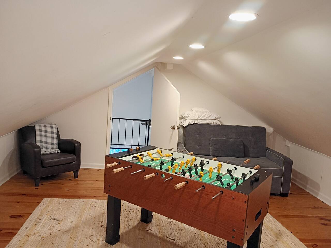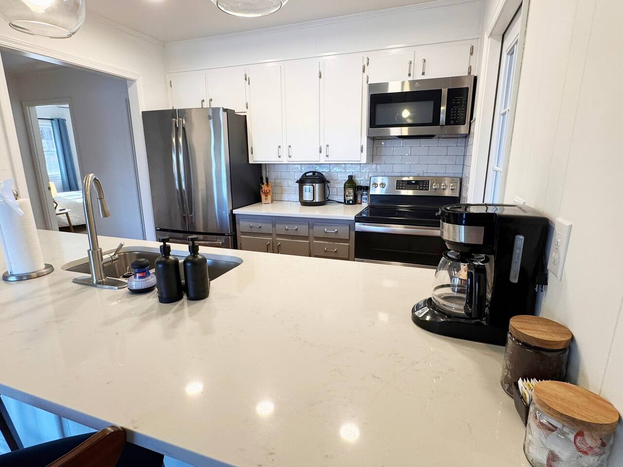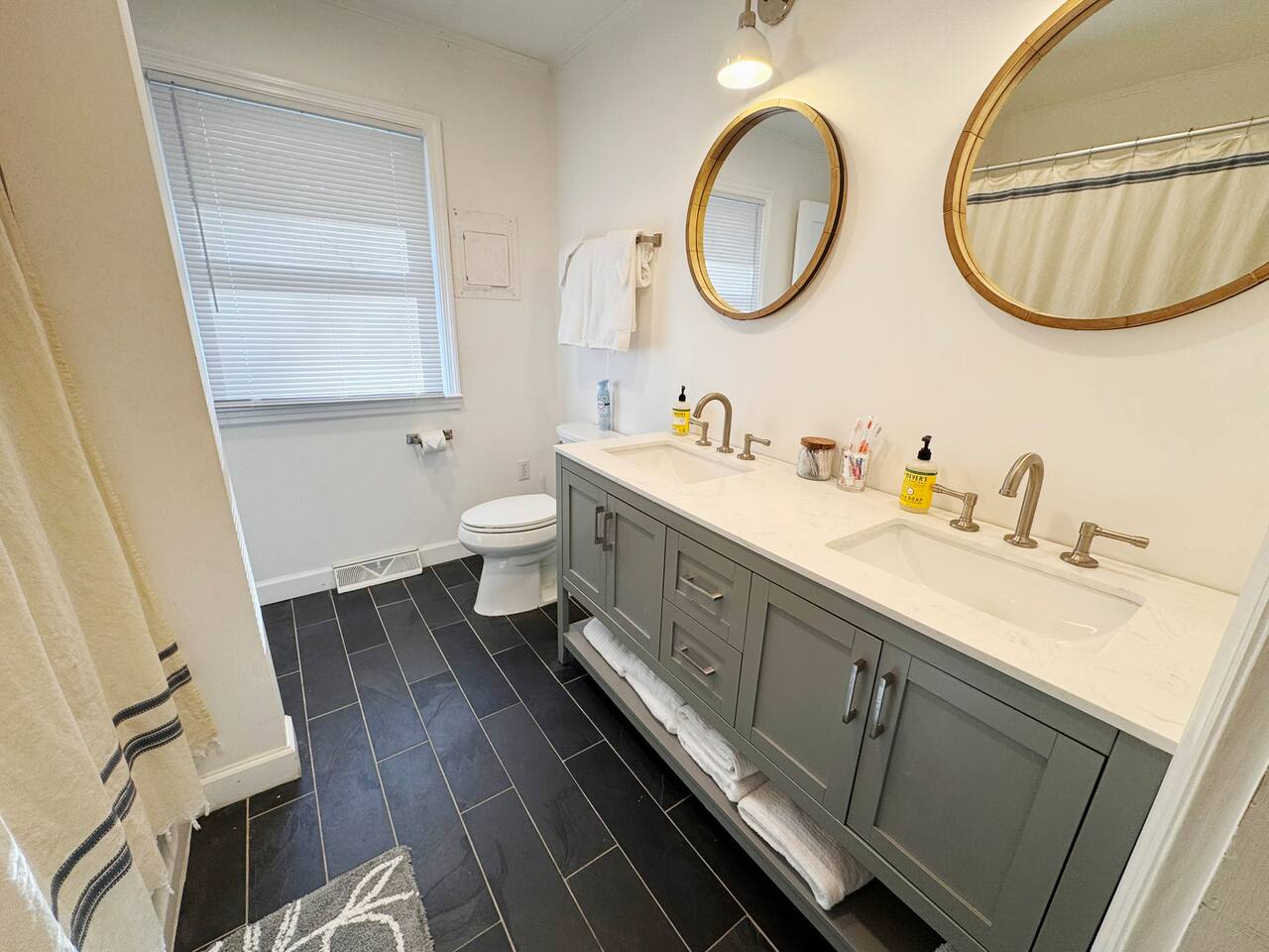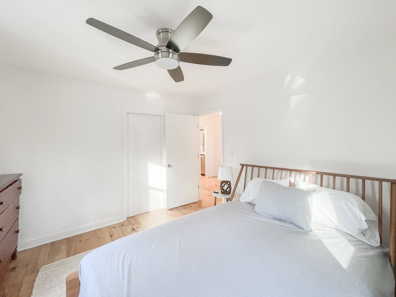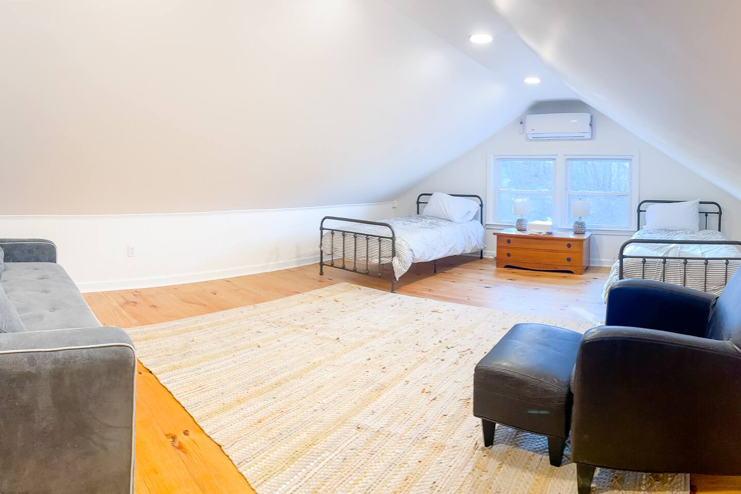 Feel at home with high ceilings and open kitchen/dining/living space overlooking beautiful views of the water. The home has first floor bedrooms with queen beds. A staircase leads to a loft space with two twin beds and a pull-out full bed. Take in the view from Adirondacks on the deck or sit in the shade of a screened-in porch off the kitchen.