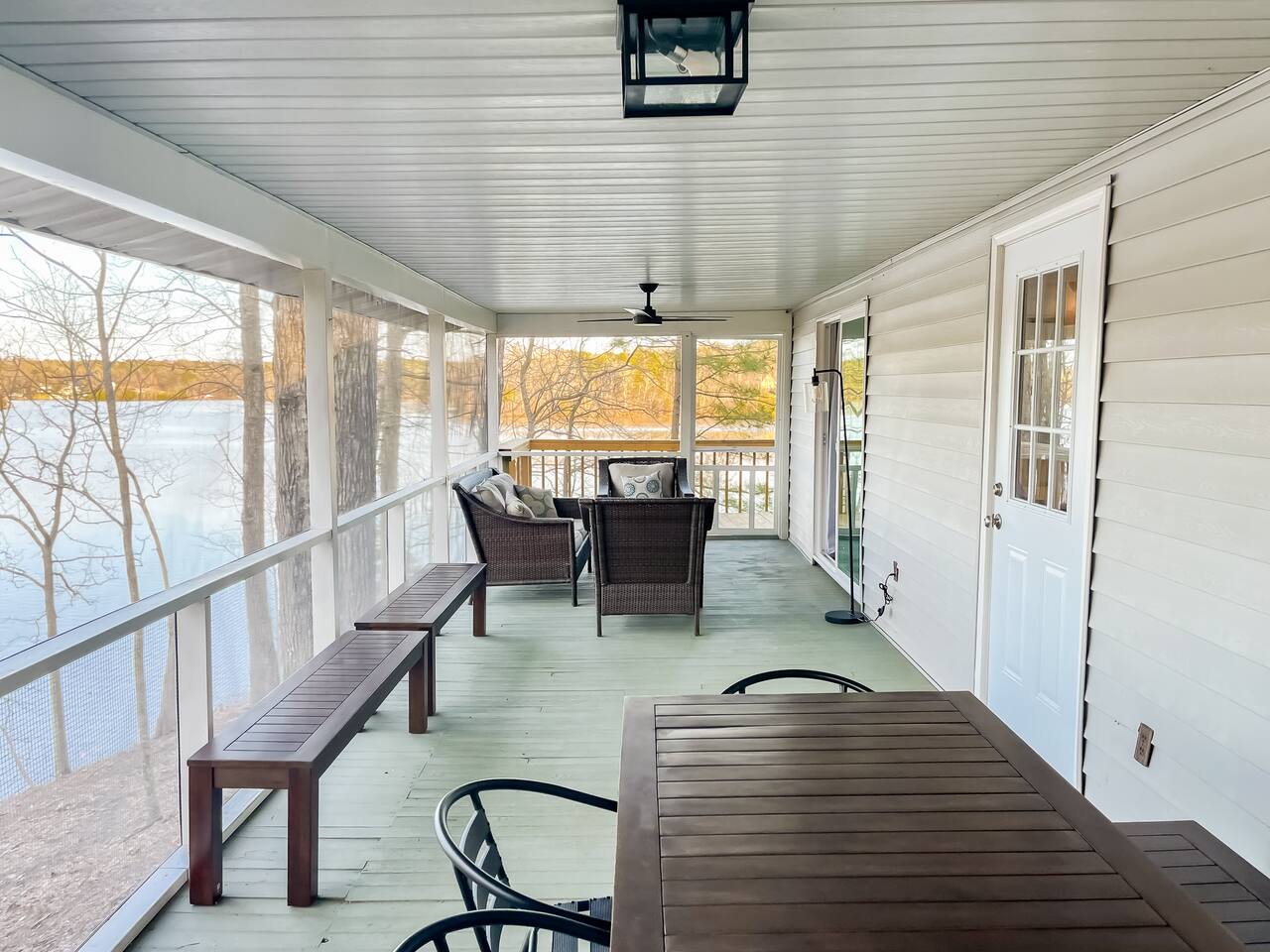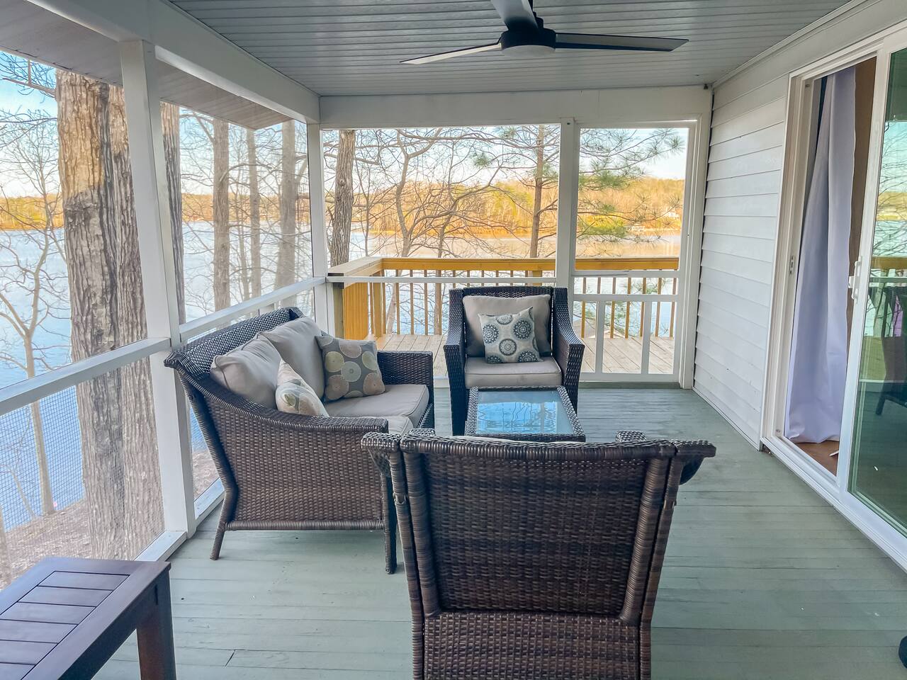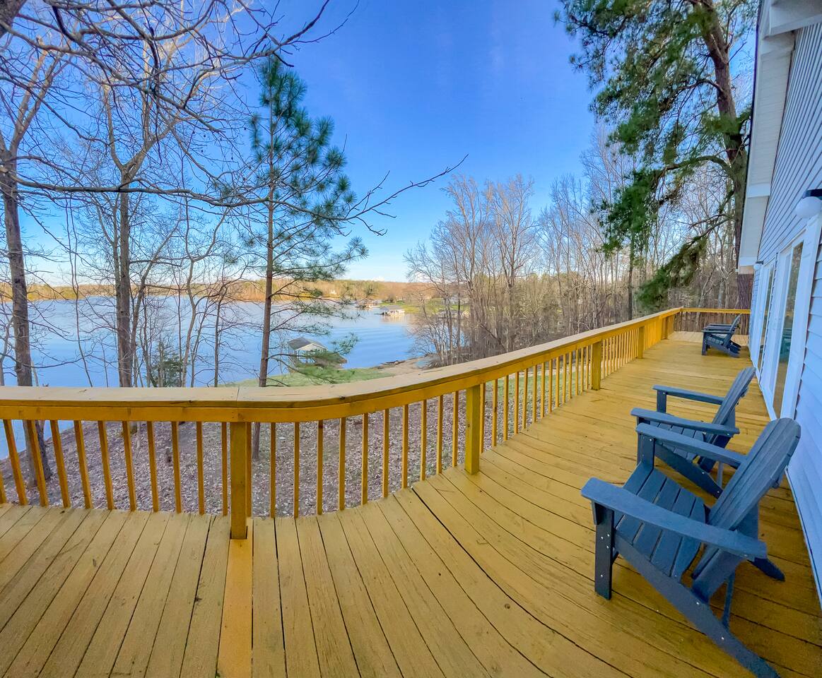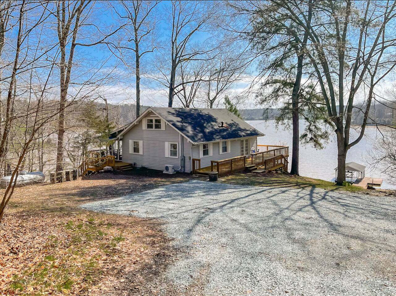Relax and enjoy our private retreat, located on 12 waterfront acres on Hyco Lake. This three (3) bedroom house has been completely renovated in 2021 and features a NEW 1800 square foot boathouse. House features wrap-around porch with wide, 180-degree views of the main channel!!