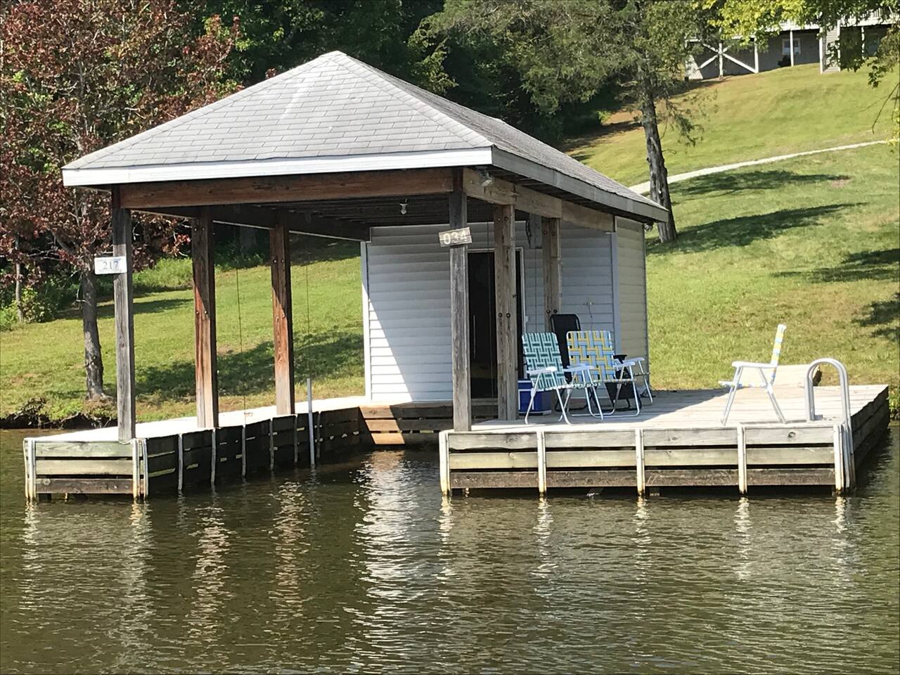 The lot is fairly steep. A gravel path leads from the house to the bottom of the yard and lake. The boat is not for guest use, but you can contact the Hyco Lake Marina if you would like to rent a boat during your stay.