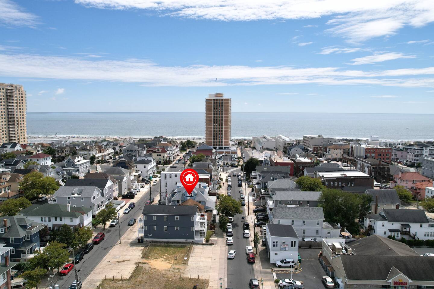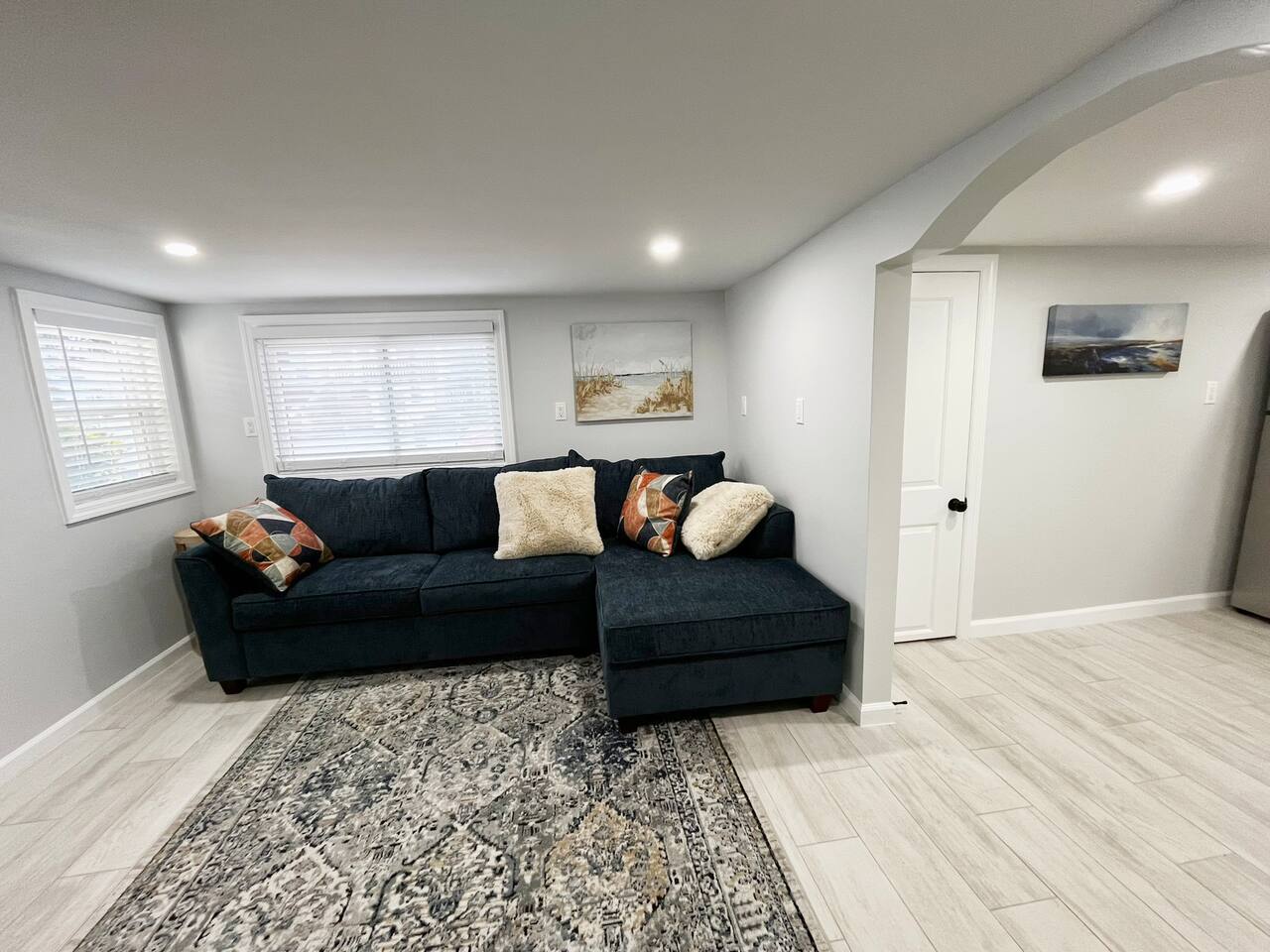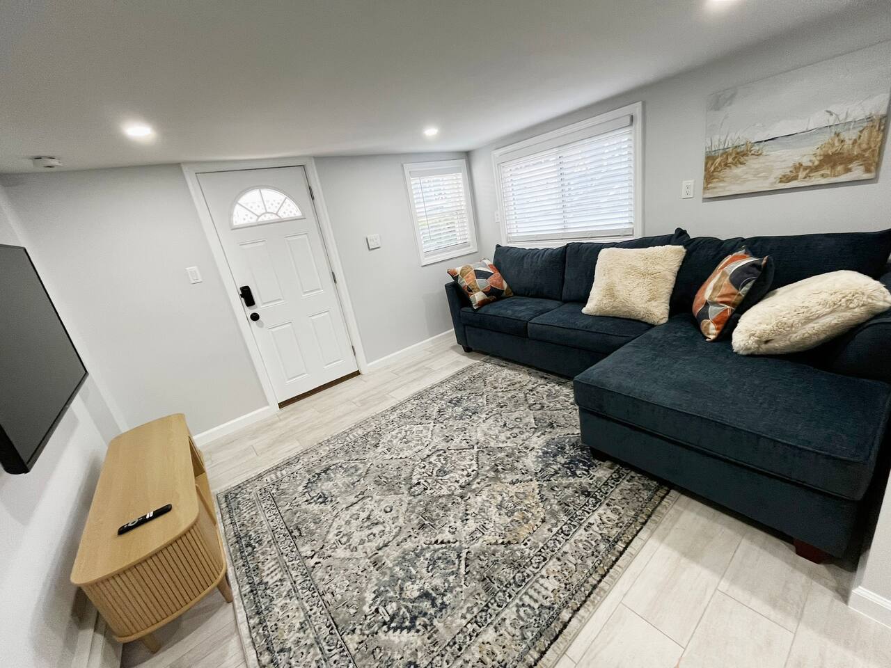 - Location: Just a 5-minute walk to the beach! Enjoy the sand, sun, and boardwalk all within easy reach. -Bedroom: Relax in the spacious bedroom with a cozy king size bed, fresh linens, and plenty of storage. -Fully Stocked Kitchen: Cook as much as you'd like with all the essentials at your fingertips! The kitchen is equipped with cookware, utensils, a coffee maker, microwave, and more to make you feel right at home. - Bathroom: The modern bathroom is fully equipped with fresh towels, toiletries, and a walk-in shower. - Comfortable Living Area: The open-plan living space is perfect for unwinding after a day at the beach, with a comfortable couch and flat-screen TV.